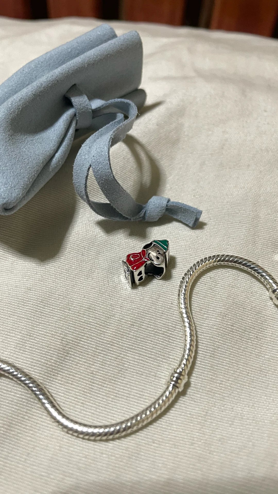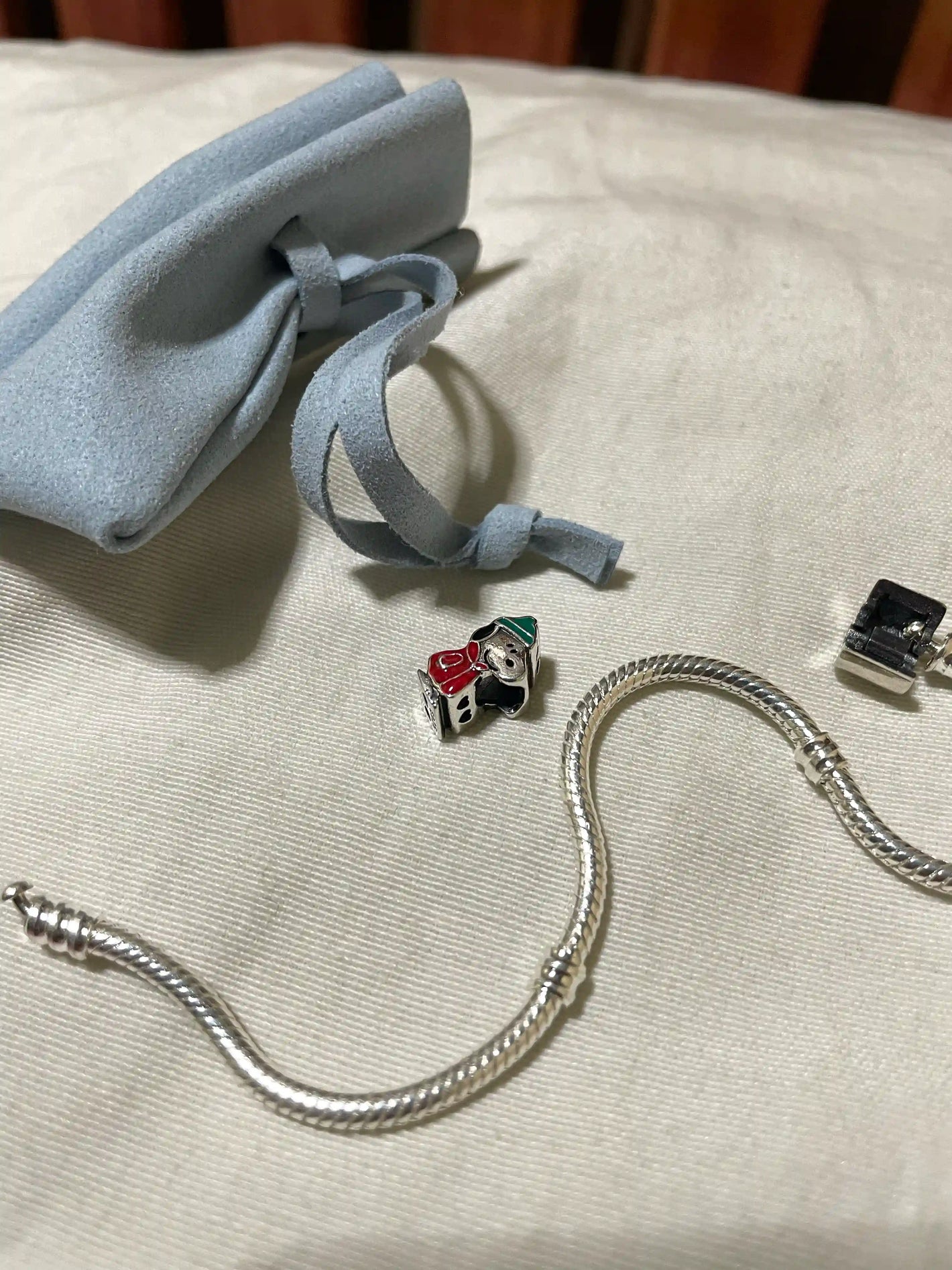 Llegó completo con su bolsita y la pulsera incluida. El charm de invierno está hermoso, los detalles se ven claros. Fue para regalo y sí le gustó mucho